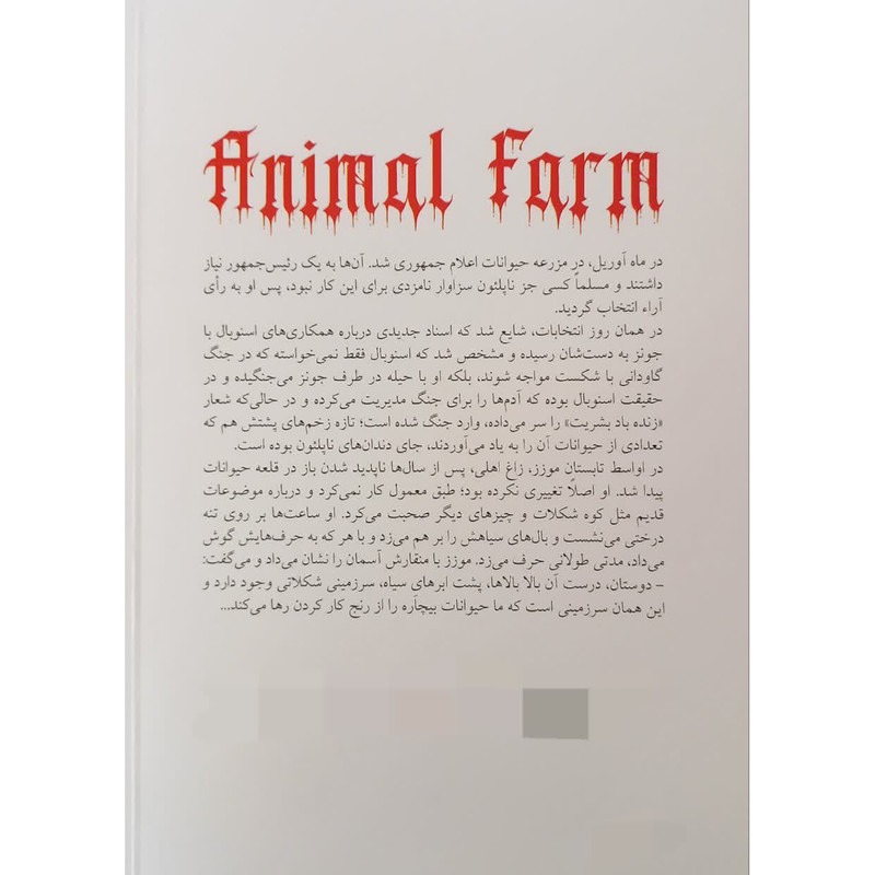 رمان مزرعه ی حیوانات، افسانه ای مدرن و اثر نویسنده ی بسیار توانمندی است که استعداد درخشانش در نوشتن این ژانر از هجو، برای تمامی کتاب دوستان در سرار جهان به اثبات رسیده است. داستان کتاب، حکایت شورش حیوانات یک مزرعه علیه انسان هاست. خوک ها، رهبری سایر حیوان ها را به دست گرفته و در تلاش اند تا برتری خود را به اسب ها، گاوها، گوسفند ها و بقیه بقبولانند. اولین جرقه های شورش، زمانی زده می شود که خوکی، برای به دست گرفتن مالکیت جریان برق، پیشنهاد ساخت یک آسیاب بادی را مطرح می کند؛ ایده ای که ناپلئون، رهبر بی چون و چرای قیام، آن را از آن خود می داند. او از سگ های کوچک و جوان به عنوان محافظ خود استفاده کرده، با انسان ها وارد مجادله شده و به تدریج، حکومتی مستبدانه تشکیل می دهد و حتی قوانین وضع شده در ابتدای حکومت خود را نیز می شکند. پیروان قدیمی و وفادار او، شرایط حال حاضرشان را از نظر غذا و کار، بهتر از زمان حکومت انسان ها ندانسته و وقتی که ناپلئون و اسکویلر را در حال عیاشی و خوشگذرانی با دشمنانشان می بینند، به سرنوشت شوم خود پی می برند. رمان مزرعه ی حیوانات، تشریحی اساسی بر آسیب های استبداد است و نشان می دهد که خودکامگی نه تنها باعث فساد رهبران می شود، بلکه قدرت فکر و استدلال مردم تحت حکومت را نیز از بین خواهد برد.